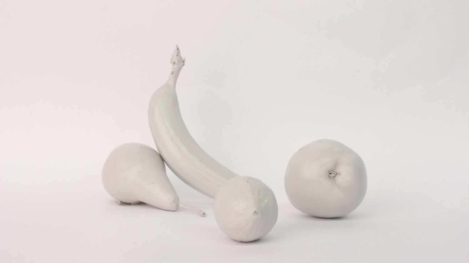 The initial idea was that showing very craving food (like how food advertisement do)and show it’s fake by playing with them or destroy them. Kika started making fake food with paper clays. When she was making them, I really loved the visual image of white cube becoming white food in front of me. White is the colour reminds me of laboratory. We got the idea of showing how we make fake food in order to show how food is prepared in exaggerated way.